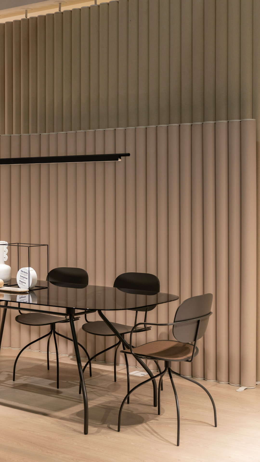 Explore our chairs, tables, storage and other essentials, selected for their balance between design and functionality.